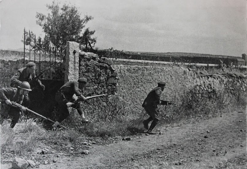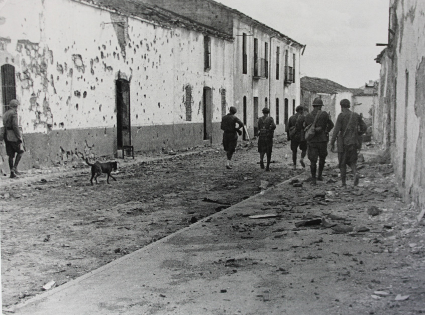 Robert Capa observó los dedos moteados y arrugados del anciano señalando sobre el mapa el camino a seguir y el encuadre fotográfico de su cara arrugada, llena de pliegues y viejas sonrisas. Su Leica inmortalizó aquel rostro y aquella vestimenta campesina de pantalón holgado y cordel al cinto. El pequeño grupo reanudó su marcha camino de una colina rocosa que guardaba la carretera que conducía a Gangi.